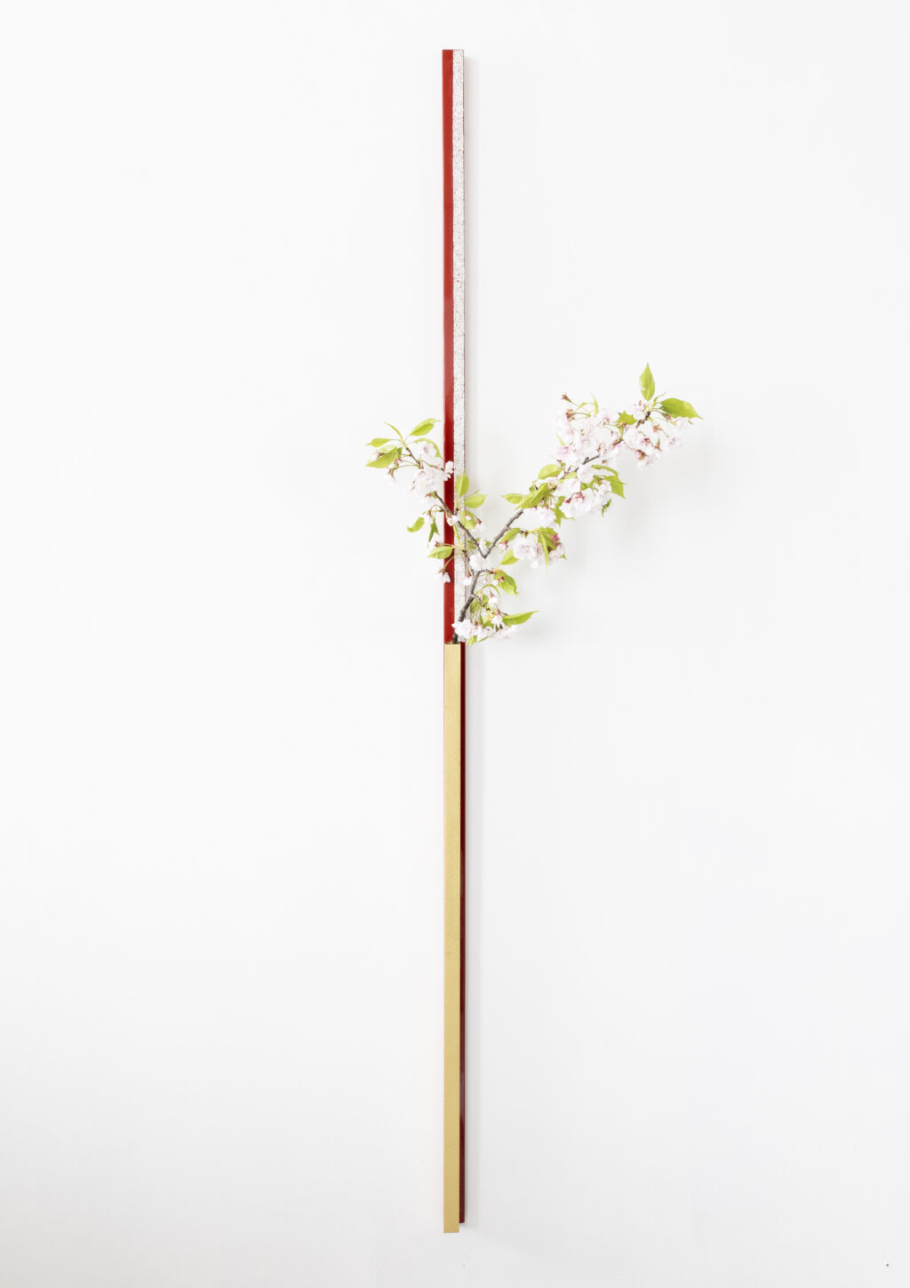 It is a wall-mounted single-wheeled vase and clock using lacquer, which is a traditional Japanese craft. While using the delicate technique peculiar to lacquer that expresses "whiteness" by laying out egg shells called Mi eggshell, we create a landscape like an abstract painting in which manual work and geometry coexist. 日本の伝統工芸である漆を用いた壁掛け一輪挿しと時計です。卵殻という卵の殻を敷き詰めて「白色」を表現する漆特有の繊細な技法を使いながら、手作業と幾何学が共存した抽象絵画のような風景をつくっています。