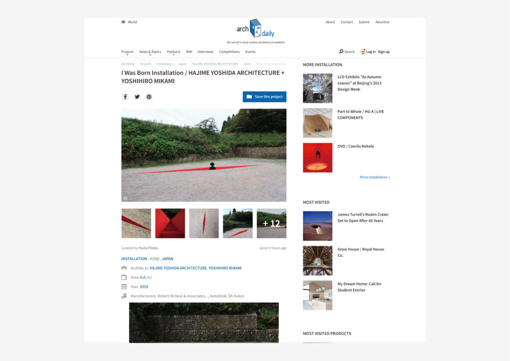 The Land art project that we created in Rokkosan, Hyogo, Japan "I was born" was published in ArchDaily, an architectural media in USA.